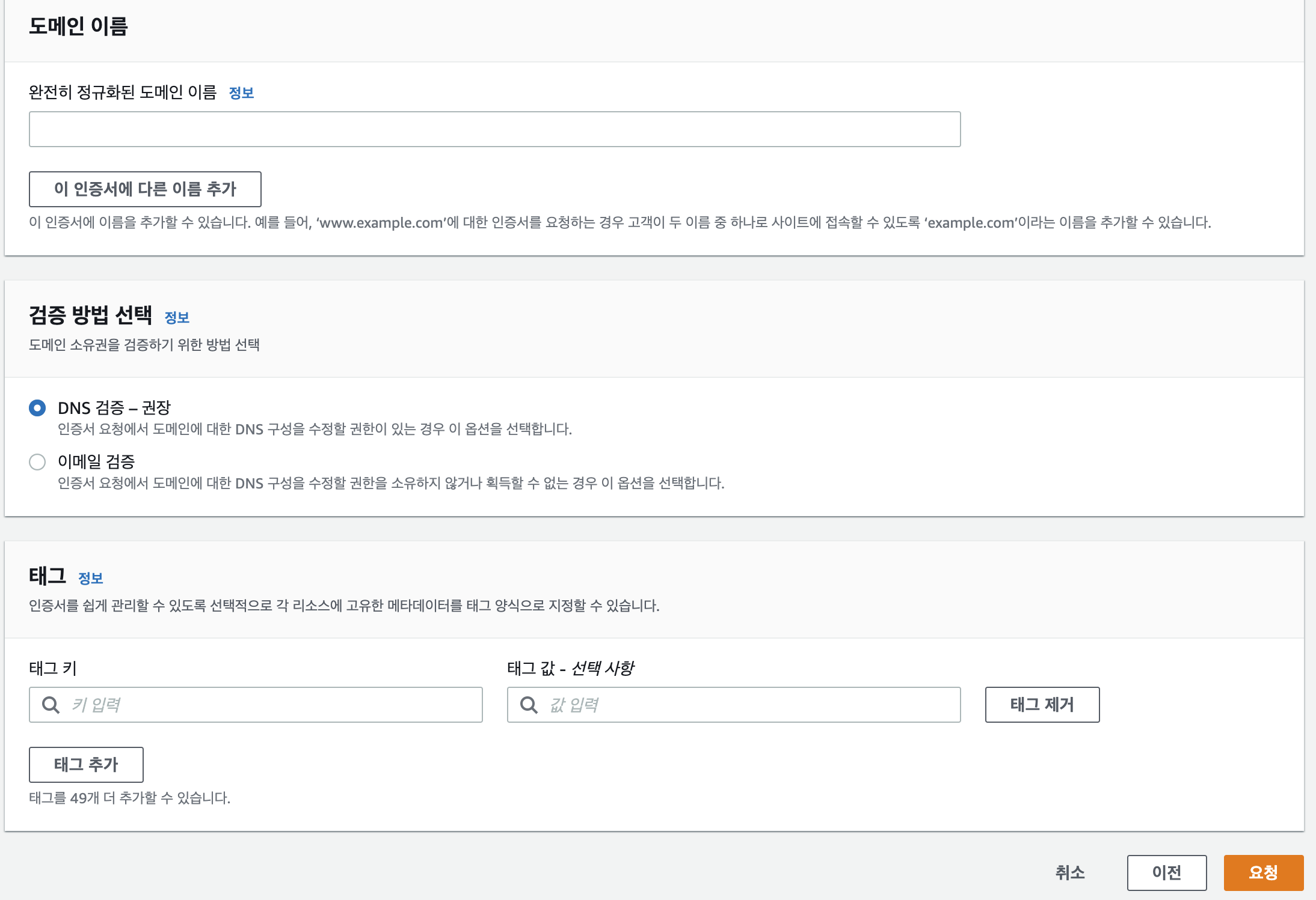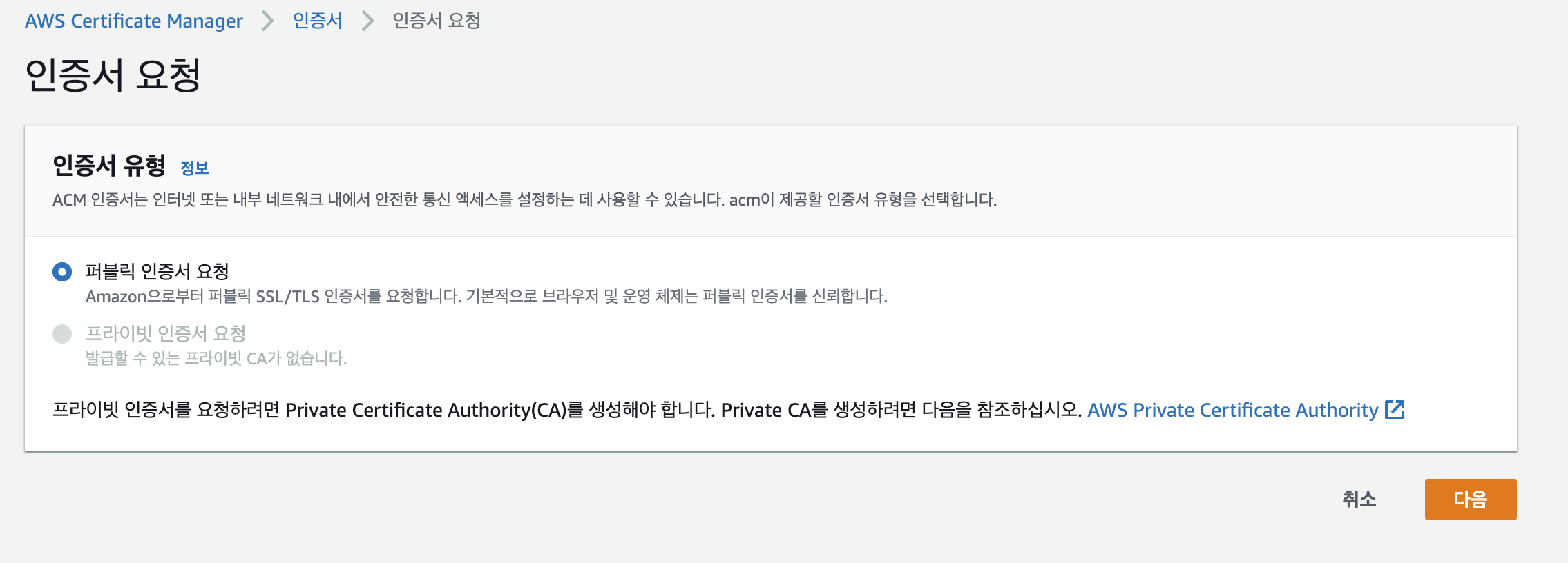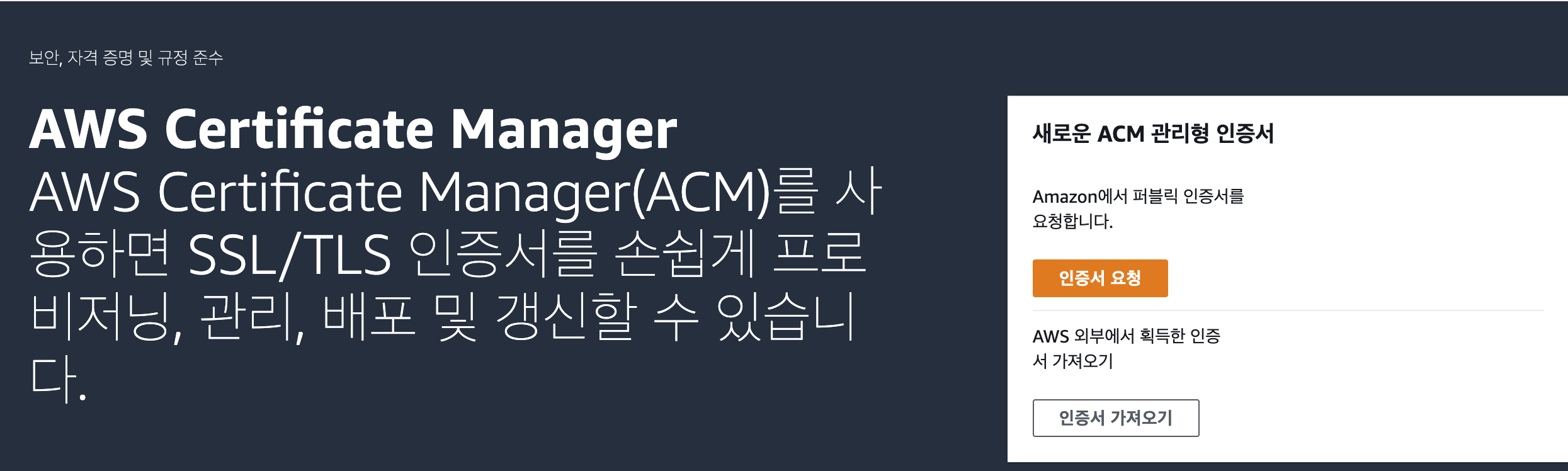 ssl 인증서는 AWS의 certificate manager 에서 발급받을 수 있다.