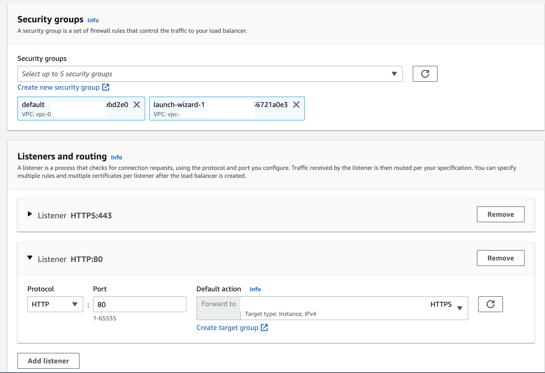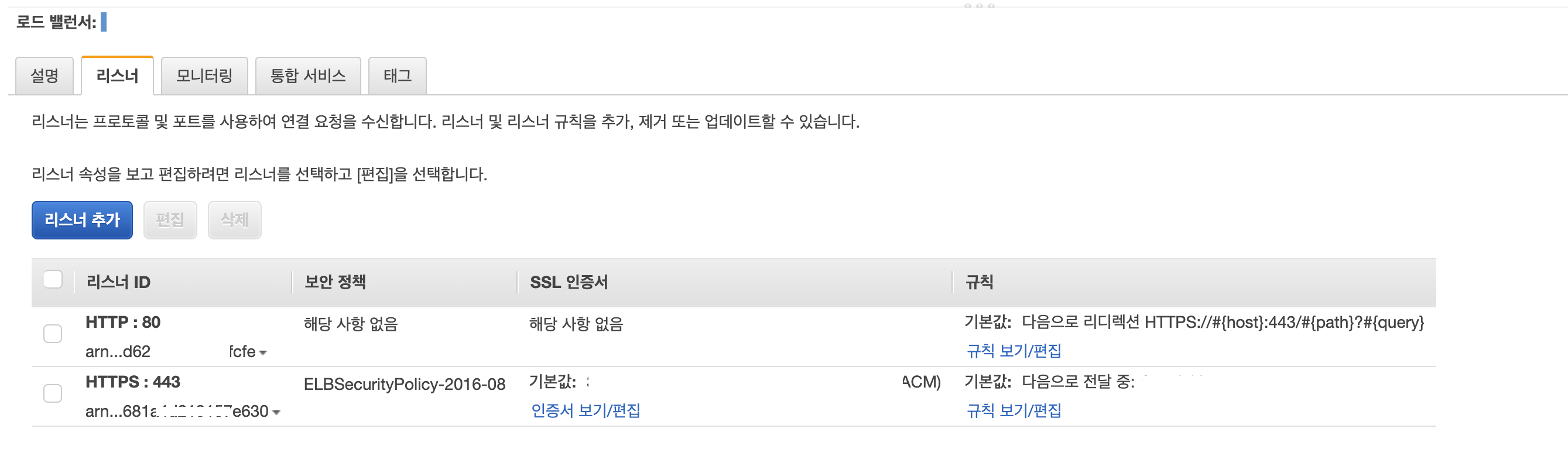 로드밸런서가 프로비저닝이 끝나고 생성되면 Listener 를 편집해줘야 한다.