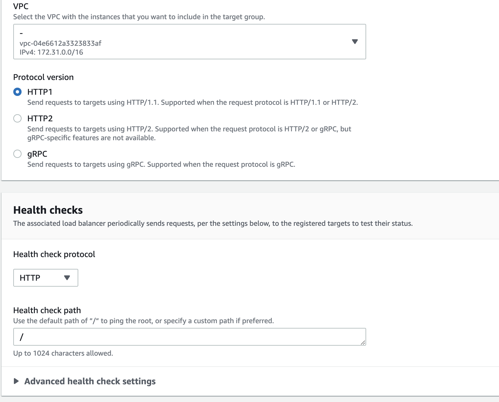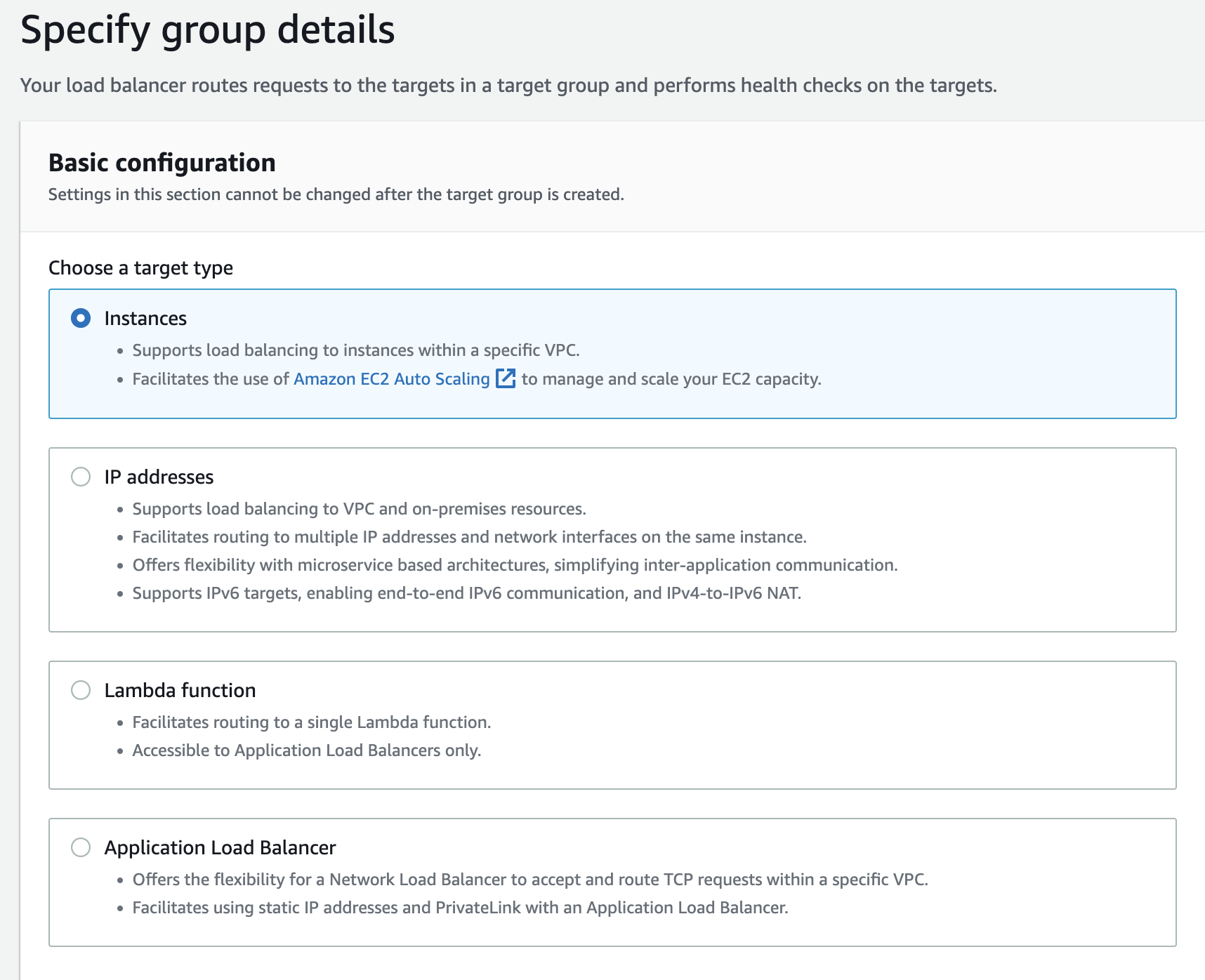 로드밸런서를 만들기 전에, 대상 그룹이라는 것을 먼저 만들어줘야 한다. 대상그룹이란 로드밸런서가 트래픽을 전달하는 대상 (인스턴스)의 그룹이다.