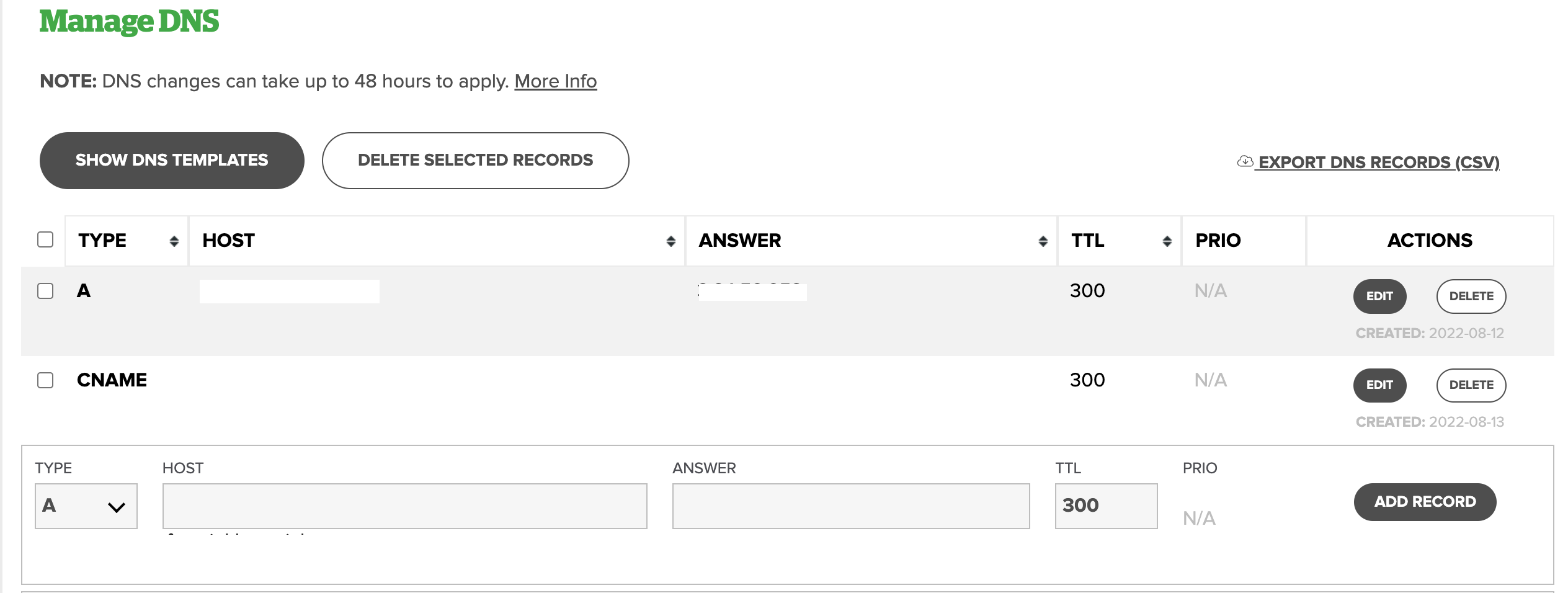 도메인 관리 페이지에서 manage DNS 페이지로 들어간다.
