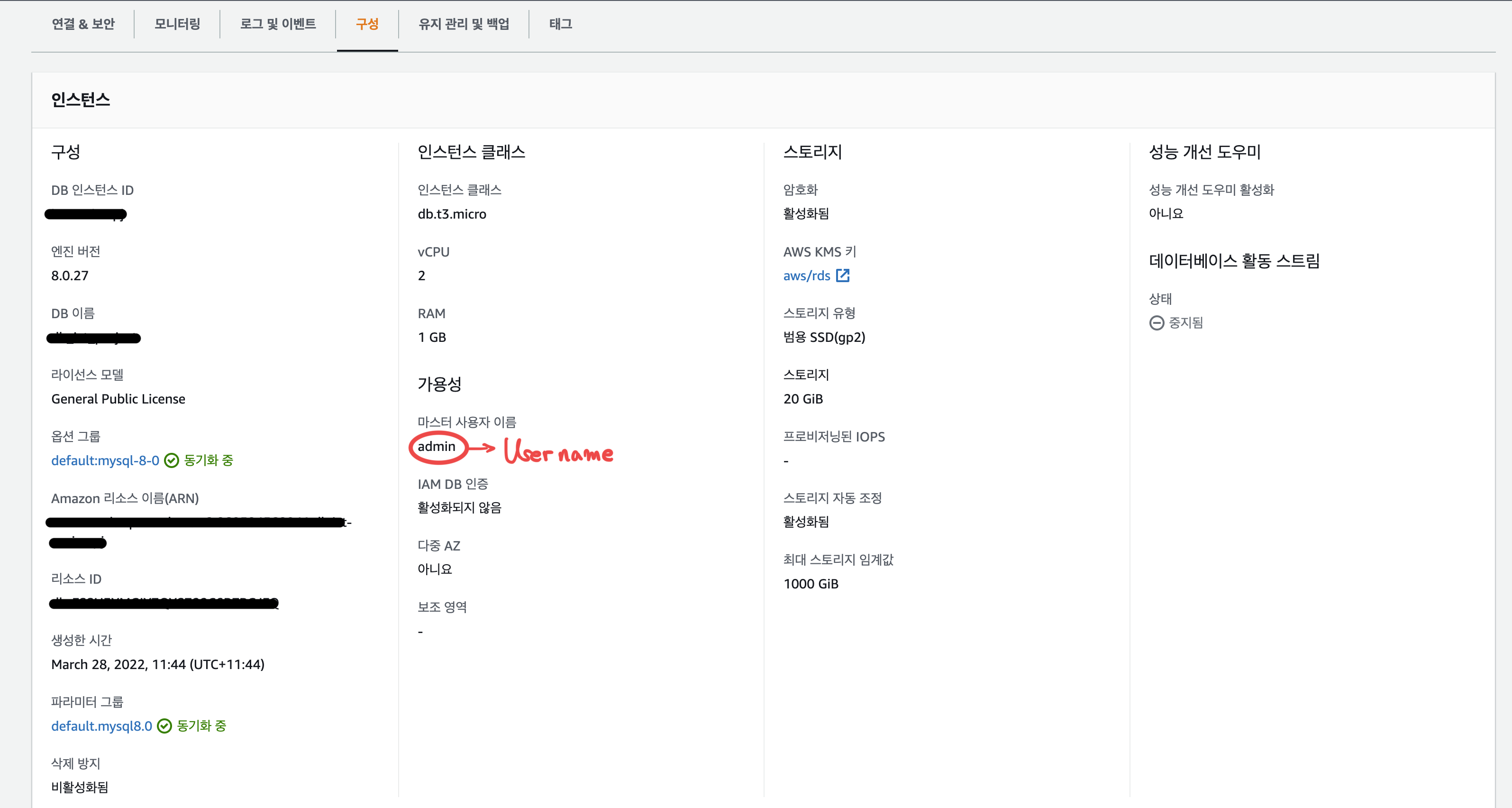 RDS에 연결하기 위해 채워야하는 칸들입니다.